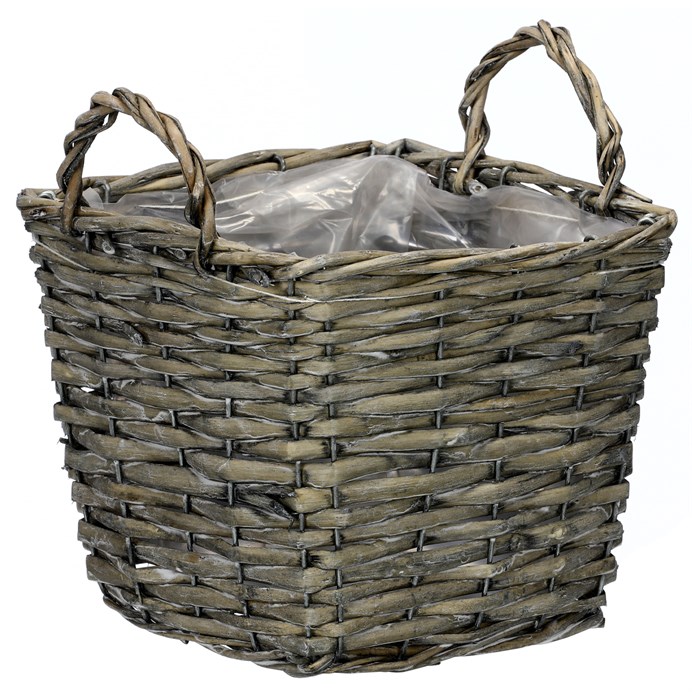 Košík proutěný - obal na květiny, hranatý, šedý