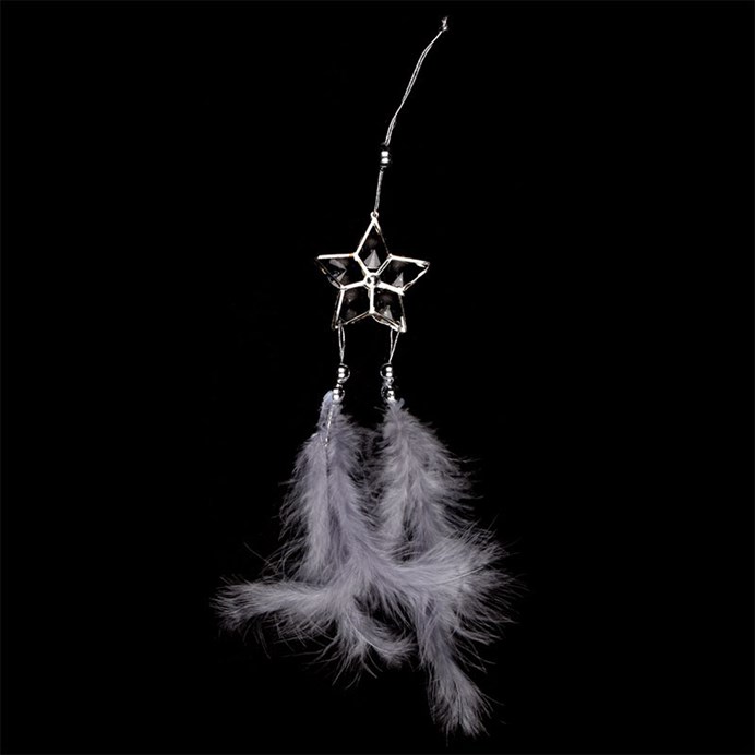 Dekorace z peří závěsná - barva šedá, baleno 6 ks, cena za 1 ks