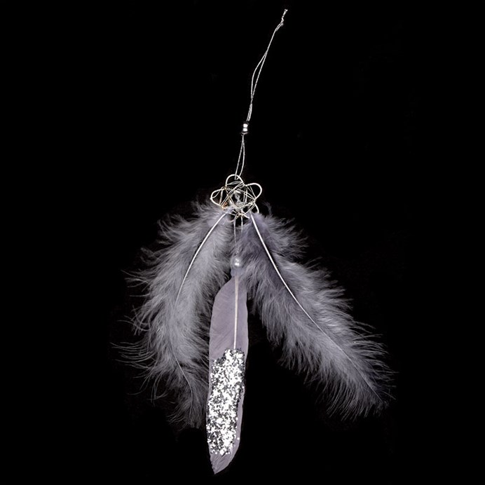 Dekorace z peří závěsná - barva šedá, baleno 6 ks, cena za 1 ks