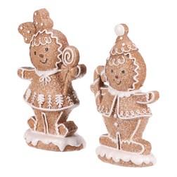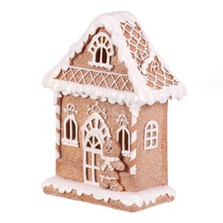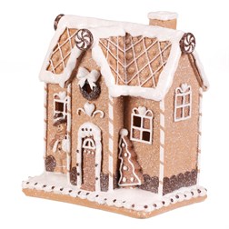 Domeček perníkový s panáčkem - polyresin, LED osvětl., hnědo-bílý