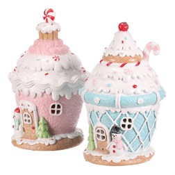 Domeček z cukrovinek - dortík, polyresin, LED, mix 2 barev, cena za 1 ks