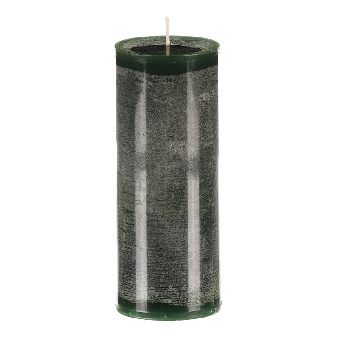 Svíčka sloupcovitého tvaru o průměru 6 cm a výšce 15 cm bez vonných esencí, bude ideální pro ty, kteří milují relaxaci a romantické chvilky u zapálených svíček. Je celá v tmavě zelené barvě, a s dobou hoření až 66 hodin, představuje dlouhotrvající možnost užívat si pohled na plápolající plamínek zapáleného knotu svíčky, zejména za dlouhých podzimních a zimních večerů. Svíčka je kompletně ze stoprocentního parafínového vosku a je potažena průhlednou plastovou fólií. Upozornění: Udržujte svíčku, zejména zapálenou, mimo dosah dětí!