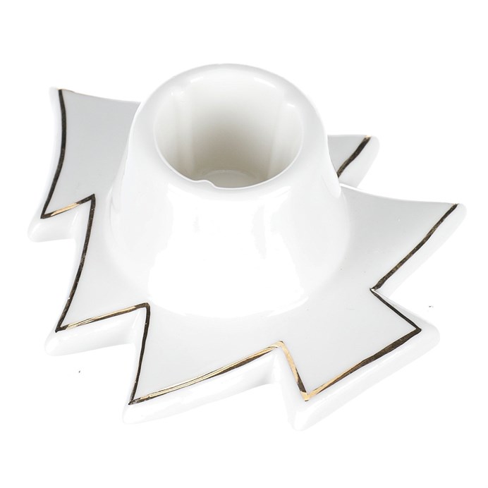 Svícen na kónickou svíčku - porcelán, tvar stromku, bílý