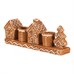 Svícen perníkový - keramika, na 2 kónické svíčky, domky a stromek