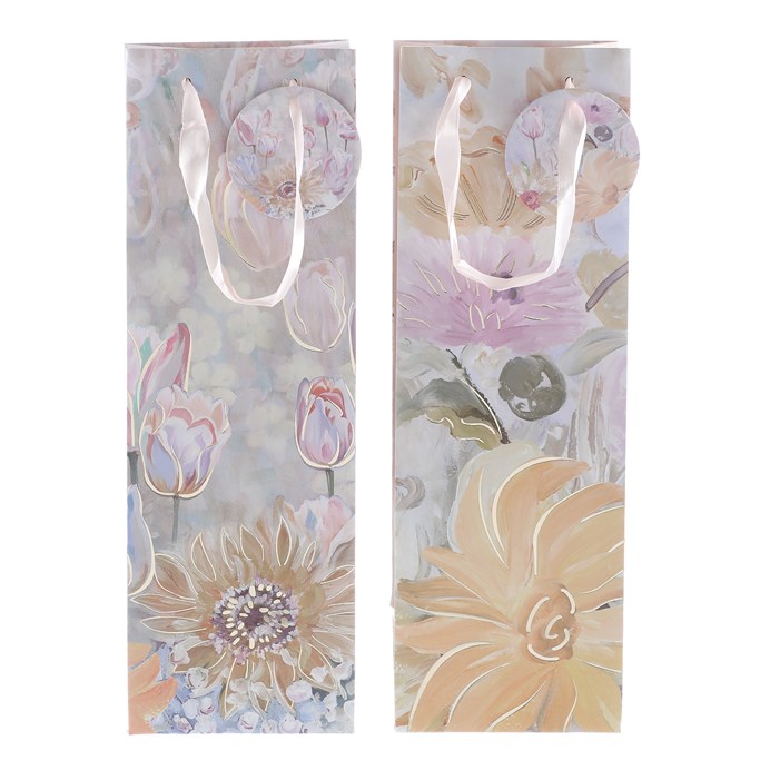 Taška papírová na víno - květiny, mix 2 barev, cena za 1 ks