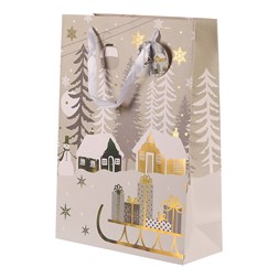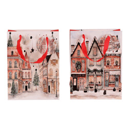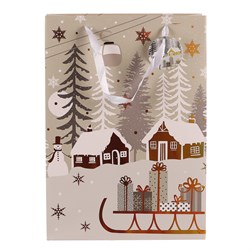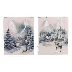 Taška papírová - zimní krajina, mix 2 druhů, vel. S, cena za 1 ks