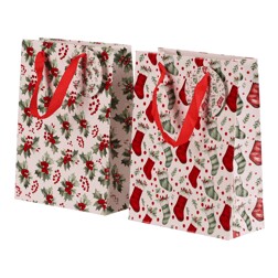 Taška papírová - vánoční vzor, vel. S, mix 2 druhů, cena za 1 ks