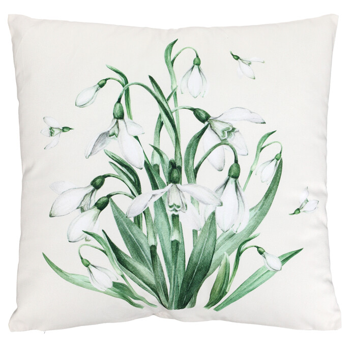 Polštář s výplní - se sněženkami, sametový, 45 x 45 cm