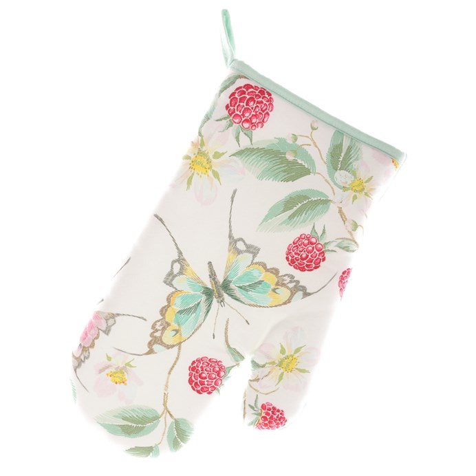 Bavlněná chňapka s magnetem je nejenom praktickým a funkčním pomocníkem v kuchyni, ale také krásnou letní dekorací. Je zdobená nádherným letním motivem, plným zralých malin, barevných motýlů a svěžího bílého kvítí. S touto chňapkou si do domácnosti přenesete kousíček léta a zároveň budete mít stále po ruce nástroj pro bezpečné manipulace s horkými nádobami. Je vybavena magnetem, ale i poutkem, takže se nabízí mnoho možností, na co a kam tuto pomůcku umístit.