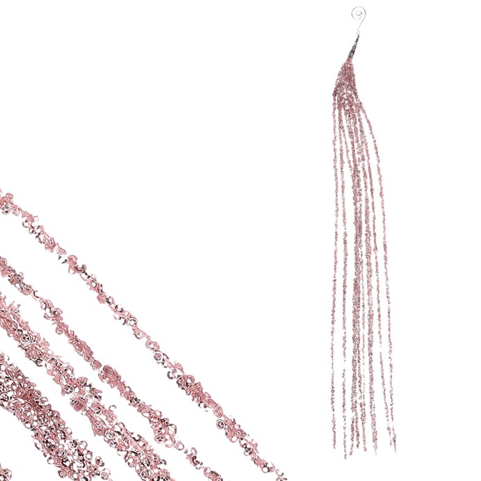 Větev umělá - převislá se třpytkami, barva růžová