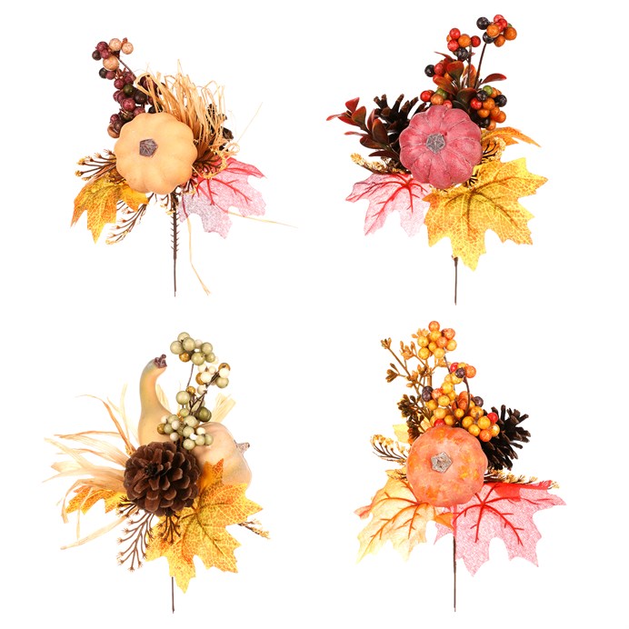 Listí, dýně, bobule a šišky - umělý trs, mix 4 druhů, cena za 1 ks