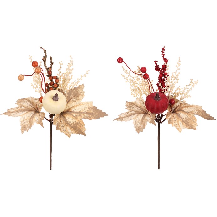Tato umělá větev je zdobená dýní, bobulemi, listím a drobnými trsy v barvách podzimu – béžových, červených a hnědých odstínech. Skvělá trvalá ozdoba, která vydrží napořád a přinese do vašeho interiéru dokonalé oživení inspirované právě podzimní přírodou. K dispozici ji máme ve dvou odlišných variantách, přičemž cena je uvedená za 1 kus.