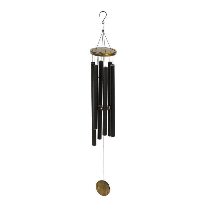 Zvonkohra s kovovými trubicemi v hnědém odstínu a dřevěnými doplňky vytváří příjemný zvukový efekt vhodný pro zavěšení na terasu, balkon nebo do interiéru. Její lehká konstrukce umožňuje snadné zavěšení pomocí kovového háčku, zatímco dřevěná základna a závěsné prvky dodávají přírodní vzhled. Zvonkohra je navržena tak, aby při pohybu větru vydávala harmonické tóny, které přispívají k relaxační atmosféře. Kombinace kovu a dřeva zajišťuje odolnost a dlouhou životnost produktu.