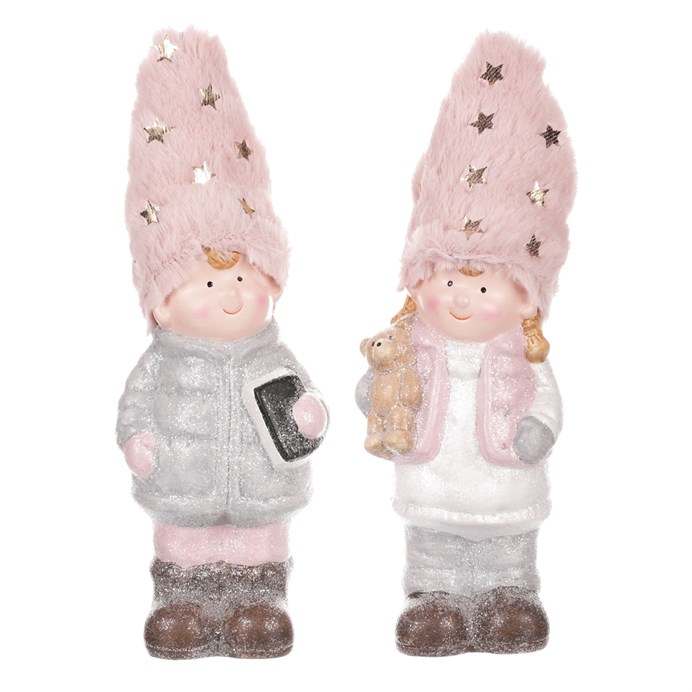 Roztomilá kolekce keramických dětských postaviček ztělesňuje radost a očekávání z příchodu zimy a vánočních svátků. S milými úsměvy a červenými tvářičkami, budou skvělým doplňkem, který oživí váš interiér. V teplém oblečení a botkách jsou připraveny čelit zimním dobrodružstvím, ať už je to stavění sněhuláků nebo sáňkování po zasněžených kopcích. Tyto dětské postavičky nejsou jen dekorací, ale i spojovacím článkem mezi světem dospělých a jejich ratolestí. Přináší nám dospělým do našich hektických životů okamžiky, kdy se na chvíli zastavíme a uvědomíme si, že je důležité se umět radovat i z maličkostí.
