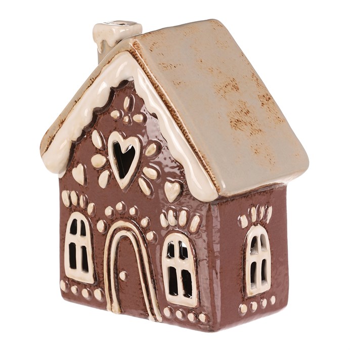 Keramický domeček ve fialovém odstínu, který vypadá jako z perníku, bude perfektní dekorací pro podzimní čas. Je zdobený bílou polevou a uvnitř je prostor pro vložení čajové svíčky. Po jejím rozsvícení se rozzáří světlo skrze otvory v okénkách čímž navodíte neodolatelnou atmosféru.