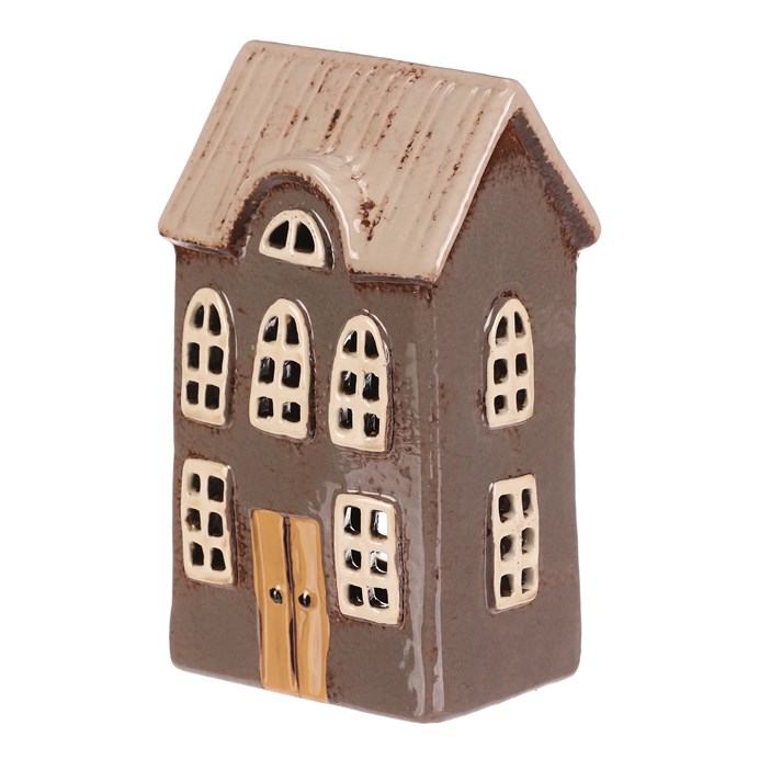 Keramický patrový domeček v šedém odstínu, bude perfektní dekorací pro vánoční období. Uvnitř má prostor pro vložení čajové svíčky. Po jejím rozsvícení se rozzáří světlo skrze otvory v okénkách čímž navodíte neodolatelnou sváteční atmosféru.