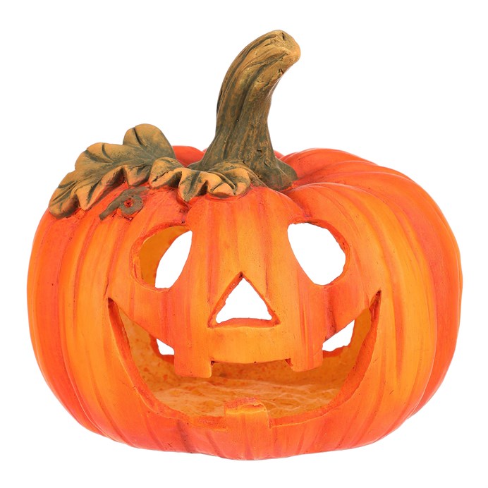 Keramická dýně s vyřezaným obličejem je typickou ozdobou pro podzim a zvláště pak Halloween. Dýně má v sobě dostatek prostoru pro vložení svíčky, čímž vytvoříte skutečně působivou atmosféru, zejména za tmy. Ve dne bude krásnou ozdobou, díky kombinaci sytě oranžové barvy se zelenými lístky a stopkou. O temných večerech a nocích, po zapálení knotu svíčky, vytvoříte jedinečný až strašidelný světelný efekt díky pronikajícím paprsků světla ven skrze všechny otvory.