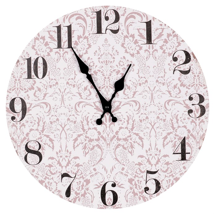 Hodiny nástěnné - pr. 34 cm, MDF, jemný květinový motiv