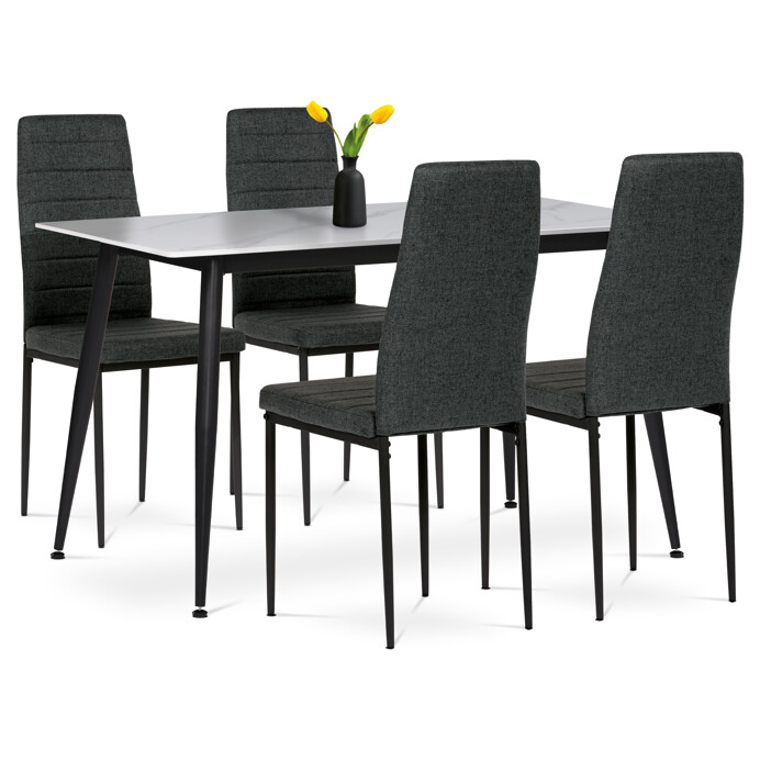 Jídelní set s 4 židlemi, 130x70x76cm, keramika, mramor, ASE-1004 BK2