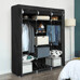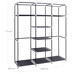Látková šatní skříň v černém provedení nabízí praktické řešení úložného prostoru pro oděvy a doplňky. Její pevná kovová konstrukce zajišťuje stabilitu a dlouhou životnost, zatímco černá látka chrání obsah před prachem a nečistotami. Skříň je vybavena třemi závěsnými tyčemi pro zavěšení oblečení a třemi policemi uprostřed pro uložení složených věcí nebo krabic. Přední část lze jednoduše stáhnout pomocí rolovacích pásků, což umožňuje rychlý přístup k obsahu. Díky kompaktním rozměrům a lehké konstrukci je vhodná do menších prostor i jako doplňkový úložný systém.