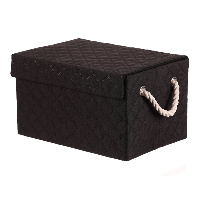 Látkový regálový koš v černé barvě, který lze snadno rozložit, je vybaven dvěma uchy z provázků a potažený hebkou látkou, bude skvělou volbou pro každou domácnost. Jedná se bezesporu o vysoce elegantní a praktické řešení pro uložení prádla nebo jiných věcí k uskladnění.
