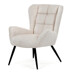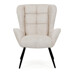 Křeslo ušák v krémovém odstínu nabízí pohodlí díky vysokému polstrování sedáku i opěradla, které je potažené prémiovou látkou s příjemnou texturou. Pevné černé kovové nohy zajišťují stabilitu a dlouhou životnost, zatímco integrované područky přispívají k ergonomickému posedění. Design s charakteristickými vysokými bočními opěrkami poskytuje oporu hlavy a ramenům, což zvyšuje komfort při odpočinku. Křeslo je vhodné do moderních i klasických interiérů, kde vynikne svým nadčasovým tvarem a neutrálním barevným provedením.
