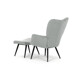Relaxační křeslo s podnožkou v modrém manšestru nabízí pohodlné posezení díky měkkému čalounění a ergonomicky tvarovaným područkám. Pevné černé kovové nohy zajišťují stabilitu a dlouhou životnost. Manšestrová látka dodává křeslu příjemnou texturu a vizuální hloubku, která se hodí do moderních i klasických interiérů. Součástí je praktický taburet pro pohodlné opření nohou, který sdílí stejný design a materiál. Křeslo není otočné ani rozkládací, což podtrhuje jeho jednoduchost a funkčnost.