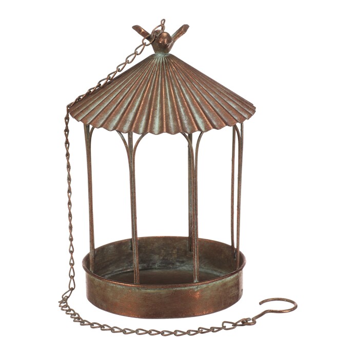 Závěsné kovové krmítko a pítko v měděném odstínu nabízí praktické řešení pro osvěžení a krmení ptactva. Jeho otevřená klec s dekorativním ptáčkem na střeše vytváří příjemný vizuální efekt a zároveň umožňuje snadný přístup ptákům. Provedení s řetízkem a háčkem umožňuje jednoduché zavěšení na větve či háčky. Měděný povrch dodává výrobku rustikální charakter a je navržen pro dlouhou životnost v exteriéru.