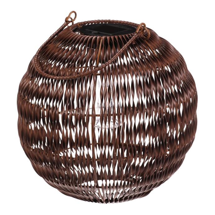 Kulovitý lampión z tmavě hnědého polyratanu nabízí příjemné LED osvětlení vhodné pro venkovní i vnitřní použití. Provedení z polyratanu zajišťuje odolnost vůči povětrnostním vlivům a snadnou údržbu. Lampión je vybaven praktickým držadlem pro snadné přenášení nebo zavěšení, což umožňuje variabilní umístění v prostoru. Jeho otevřená struktura vytváří zajímavý světelný efekt a zároveň umožňuje efektivní rozptyl světla. Velikost L poskytuje dostatečný zdroj světla pro vytvoření útulné atmosféry na terase, balkóně či zahradě. LED osvětlení je napájeno 1 x AA dobíjecí baterií a zároveň solárním panelem umístěným na horní hraně.