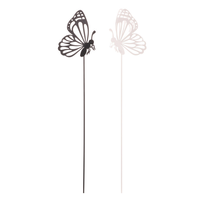 Kovový zápich ve tvaru motýla v černém provedení přináší do zahrad, květináčů či truhlíků jemný dekorativní prvek. Velikost M nabízí vyvážený rozměr, který vynikne mezi rostlinami a dodá prostoru lehkost a vizuální efekt. Tenoučký kovový zápich umožňuje snadné zapíchnutí do zeminy a stabilní umístění. Je vhodný pro venkovní i vnitřní použití, kde oživí květinové aranžmá nebo zahradní záhony. Cena je uvedena za jeden kus v mixu dvou barev.