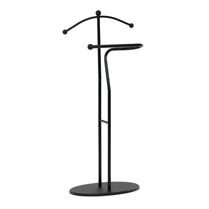 Elegantní němý sluha značky Autronic je praktickým pomocníkem pro každou ložnici nebo šatnu. Minimalistický černý design s kovovou konstrukcí nabízí pevnost, odolnost a dlouhou životnost. Ramínko a praktický držák na kalhoty nebo kravaty udrží vaše oblečení vždy upravené a připravené. Stabilní oválná základna zajišťuje bezpečné postavení a snadno zapadne do moderního i klasického interiéru.
