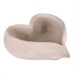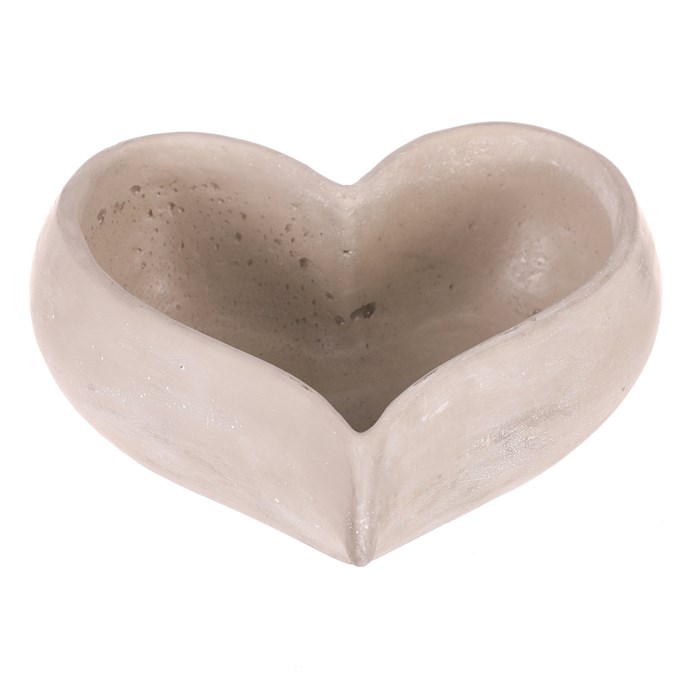 Světle šedý betonový obal na květiny ve tvaru srdce je ideální pro pietní účely. Díky svému pevnému a odolnému materiálu vydrží i venkovní podmínky a jemně podtrhne atmosféru vzpomínkových míst.