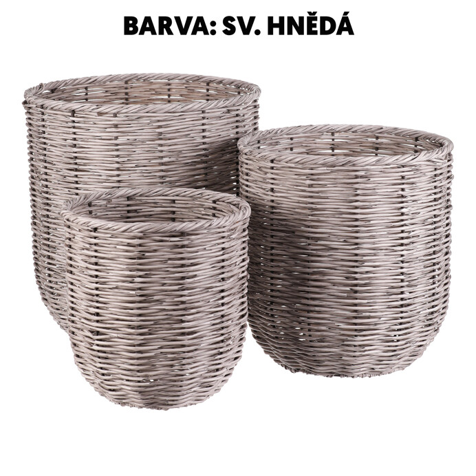 Obal z polyratanu - kovová konstrukce, sv. hnědý, cena za sadu 3 ks