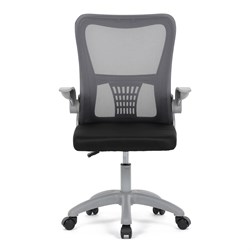 Kancelářská židle s označením KA-K2006 GREY nabízí komfortní sezení díky kombinaci šedé síťoviny a černého plastu. Prodyšný opěrák zajišťuje optimální cirkulaci vzduchu, což přispívá k příjemnému pocitu i při delším používání. Odklápěcí područky umožňují snadné přizpůsobení pracovnímu prostoru a usnadňují zasunutí židle pod stůl. Houpací mechanismus podporuje dynamické sezení a výškově nastavitelný sedák umožňuje individuální nastavení výšky podle potřeby uživatele. Plastový kříž s kolečky je určený pro tvrdé povrchy, čímž zajišťuje stabilitu a snadnou mobilitu židle. Integrovaná bederní opěrka přispívá k ergonomii a podpoře spodní části zad.