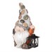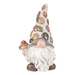 Tato dekorační figurka představuje roztomilého skřítka vyrobeného z magneziové keramiky. Jeho bílé vousy a špičatá šedá čepice imitující kámen s ozdobnými barevnými oblázky dodávají postavičce jedinečný a hravý vzhled. V jedné ruce drží lopatku a v druhé lucernu, jako by se zrovna chystal fárat v dolech. Lucerna je uzpůsobena pro vložení svíčky, čímž získáte možnost docílit neodolatelného světelného efektu. Jediným viditelným prvkem z obličeje je jeho nos, což dodává této figurce humorný a tajemný výraz. Tato postavička skřítka je nádherným doplňkem pro vaši zahradu, terasu nebo interiér a určitě přiláká pozornost všech, kdo ji uvidí.