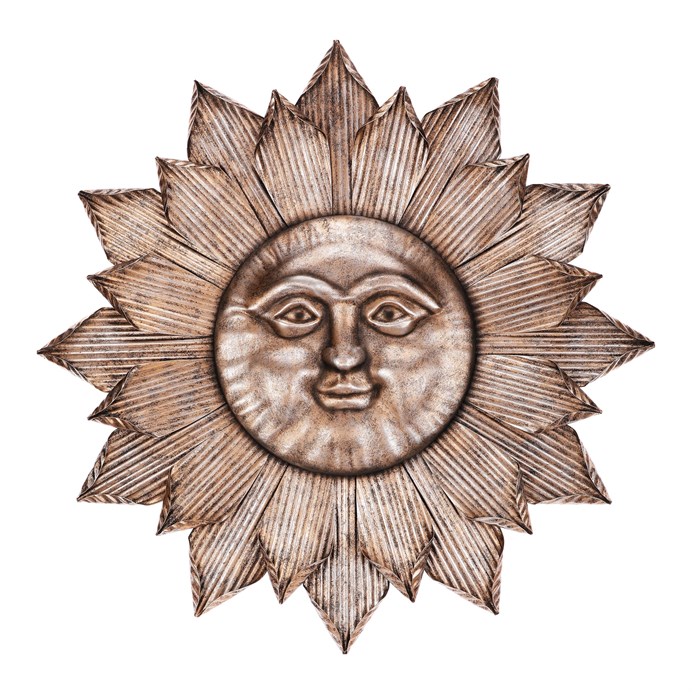 Kovová dekorace na zeď v podobě slunce s obličejem v šedém provedení, přidá vašemu prostoru originální a uklidňující prvek. Decentní barva a propracované detaily z ní dělají ideální doplněk pro interiéry i venkovní prostory, který vám přinese harmonii a pohodu.