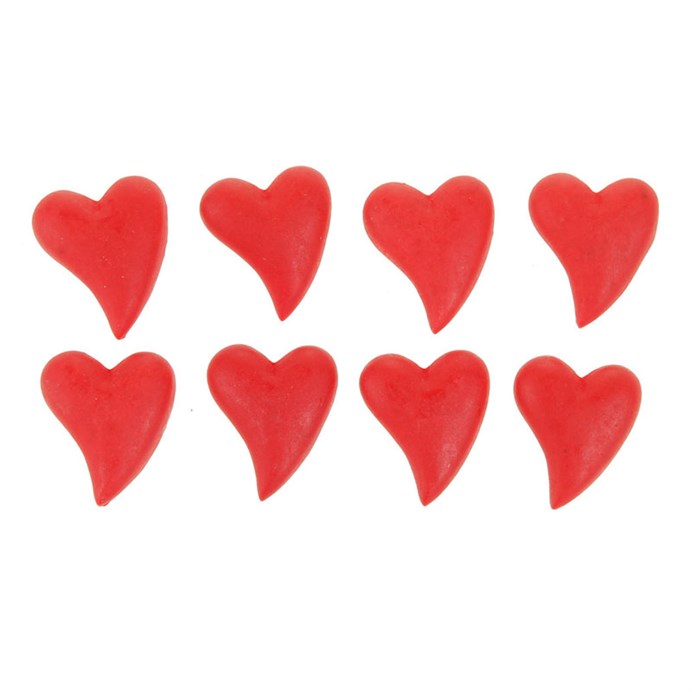Srdce na nalepení - polyresin, červené, cena za balení (8 ks)