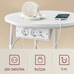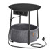 Odkládací stolek s elektrickou zásuvkou a USB porty nabízí praktické řešení pro moderní domácnosti i kanceláře. Kulatá deska o průměru 45 cm je vyrobena z MDF v bílé barvě s hladkým povrchem, který se snadno udržuje. Pevné kovové nohy v bílé barvě zajišťují stabilitu a dlouhou životnost stolku. Pod deskou je umístěn textilní koš v přírodním odstínu, který poskytuje dodatečný úložný prostor pro drobnosti. Integrovaná elektrická zásuvka se dvěma standardními výstupy a dvěma USB porty umožňuje pohodlné napájení elektroniky přímo u stolu, což zvyšuje jeho funkčnost a komfort užívání.