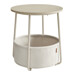 Kulatý odkládací stolek o průměru 45 cm a výšce 50 cm nabízí praktický prostor pro odložení drobností díky textilnímu koši umístěnému pod deskou. Deska je vyrobena z MDF s černým dekorem, který doplňuje černé kovové nohy s jemně zaoblenými tvary, jež zajišťují stabilitu a moderní vzhled. Textilní koš je pevný a snadno přístupný, ideální pro uložení časopisů, dek nebo jiných předmětů. Kompaktní rozměry stolku umožňují jeho využití v obývacím pokoji, ložnici či pracovně jako praktický doplněk s úložným potenciálem.