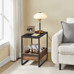 Odstavný stolek o rozměrech 55x35x56 cm kombinuje pevnou kovovou konstrukci v černé matné úpravě s praktickou odkládací plochou z MDF desky ve stejném odstínu. Součástí je úložný prostor s přírodní dřevěnou zásuvkou v dekoru ořech, která nabízí dostatek místa pro uložení drobných předmětů. Rektifikační nožky umožňují vyrovnání stolku na nerovném povrchu, čímž zajišťují stabilitu a bezpečné používání. Minimalistický design s kontrastem černé a přírodního dřeva se hodí do moderních i industriálně laděných interiérů.