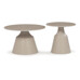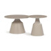 Sada dvou konferenčních stolů v béžovém odstínu kombinuje keramické desky s matnou povrchovou úpravou a stabilní kovové podnože, které zajišťují pevnost a dlouhou životnost. Větší stůl má průměr 70 cm a výšku 43,5 cm, menší pak průměr 50 cm a výšku 48,5 cm, což umožňuje variabilní uspořádání v prostoru. Keramická deska je odolná vůči poškrábání a snadno se udržuje, což přispívá k praktickému využití v moderních interiérech. Kovová podnož je navržena pro stabilitu a bezpečné umístění na různých typech podlah. Design stolů s jemným travertinovým vzorem dodává prostoru přírodní a zároveň současný vzhled.