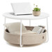 Konferenční stolek AFK-E1144 WT v moderním kulatém tvaru o průměru 75 cm a výšce 45 cm nabízí praktický úložný prostor díky textilnímu koši umístěnému pod deskou. Deska je vyrobena z MDF s bílým dekorem, který je snadno udržovatelný a odolný vůči běžnému opotřebení. Stabilní kovové nohy v bílé barvě zajišťují pevnou oporu a celkovou stabilitu stolku. Textilní koš v přírodním odstínu přidává na funkčnosti a zároveň působí vizuálně příjemně a útulně. Stolek je vhodný do moderně zařízených obývacích pokojů, kde poslouží jako praktický doplněk s dostatkem místa pro odkládání drobností.
