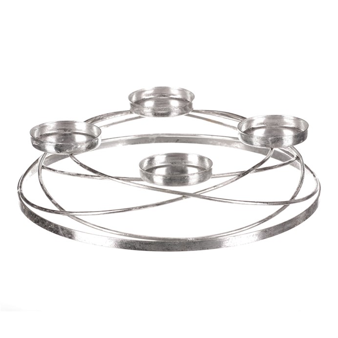 Tento kovový svícen ve stříbrném dekoru je dobrým základem pro tvorbu vlastní kreativní vánoční a zejména adventní výzdoby. Obsahuje na kovové konstrukci celkem čtyři držáky pro postavení svíček, typické pro adventní svícen. Máte tak jedinečnou základnu pro vytvoření svého vlastního adventního věnce s osobitým rukopisem. Svou univerzálností a všestranností nabízí nepřeberné množství využití a je jen na vaší fantazii a dekoračních schopnostech, jak s ním naložit.