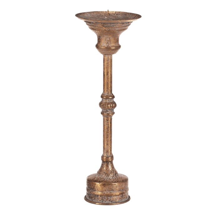 Kovová dekorace v podobě vysokého zlatého svícnu vám přináší noblesu a eleganci přímo na váš stůl. Právě kombinace zlaté barvy se starožitným vzhledem, povýší vaše běžné stolování na královskou úroveň. S tímto unikátním artiklem, který věrně připomíná cenný předmět s historickou hodnotou, se budete cítit jako host na královském, či dokonce císařském dvoře. Už jen stačí vybrat tu správnou svíčku, zapálit knot a pak už si jen vychutnávat chvíle plné romantiky a elegance. Kombinace estetiky a světelného efektu promění fádní okamžiky trávené u stolu v nezapomenutelnou událost plné záře, lesku a luxusu.