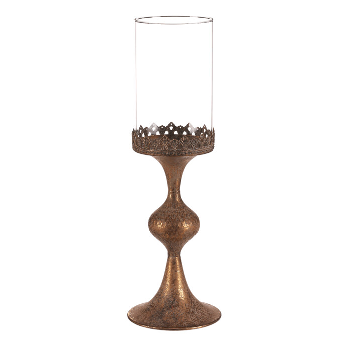 Svícen kovový se sklem - vysoký 47 cm, zlatý