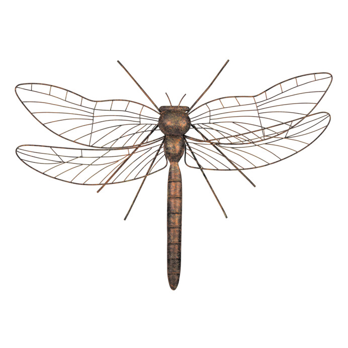 Kovová závěsná dekorace ve tvaru vážky v měděném odstínu přináší do interiéru nebo zahrady jemný industriální efekt. Detailní zpracování křídel tvořených tenkými kovovými drátky vytváří lehký a vzdušný vzhled, který působí přirozeně a zároveň dekorativně. Vážka je vybavena praktickým háčkem pro snadné zavěšení na stěnu či jiný vhodný povrch. Je vhodná pro oživení stěn v obývacím pokoji, chodbě nebo na terase, kde doplní atmosféru přírodních motivů.