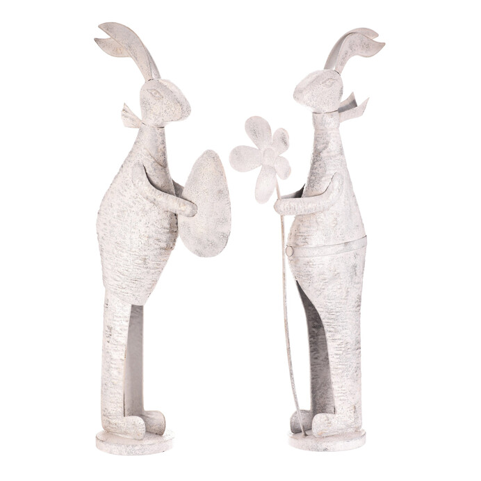 Zajíc kovový - s patinou, bílý, vel. L, mix 2, cena za 1 ks