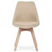 Jídelní židle s tvarovaným čalouněným korpusem v krémové barvě, vybavená pohodlným polstrovaným sedákem, který ladí s opěrkou. Nohy jsou vyrobeny z bukového masivu v přírodním odstínu, dodávající židli stabilitu a estetický kontrast. Židle je navržena s ohledem na pohodlí i styl, což ji činí ideální volbou pro moderní interiéry. Plastové kluzáky na nohách zajišťují ochranu podlahové krytiny před poškozením. Díky svému elegantnímu skandinávskému designu je vhodná do kuchyní, pracoven i obývacích pokojů.