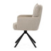 Jídelní židle HC-X1128 LAN2 od značky Autronic nabízí komfortní sezení díky vysokému polstrování sedáku a opěradla potaženému lanýžovou látkou manšestr v béžovém odstínu. Sedák je vybaven taštičkovými pružinami, které zvyšují pohodlí a přizpůsobivost při sezení. Židle disponuje otočnou funkcí s vratným mechanismem umožňujícím otáčení o 180°, což usnadňuje pohyb a přístup k jídelnímu stolu. Područky jsou součástí čalouněné části, která je pevně spojena s kovovou podnoží v černém matném provedení, jež zajišťuje stabilitu a dlouhou životnost. Díky kombinaci kvalitních materiálů a funkčních prvků je židle vhodná pro moderní jídelní prostory s důrazem na pohodlí i design.
