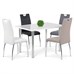 Jídelní židle s čalouněním z černé ekokůže je doplněna výrazným bílým prošitím, které podtrhuje její moderní design. Sedák i opěradlo jsou vyplněny pohodlnou pěnou, která zajišťuje komfort při sezení. Pevná čtyřnohá podnož z chromovaného kovu poskytuje stabilitu a odolnost, zároveň dodává židli elegantní lesklý vzhled. Židle nemá područky ani možnost výškového nastavení, což ji činí kompaktní a snadno kombinovatelnou s různými typy jídelních stolů. Celková konstrukce je navržena pro dlouhou životnost a snadnou údržbu.